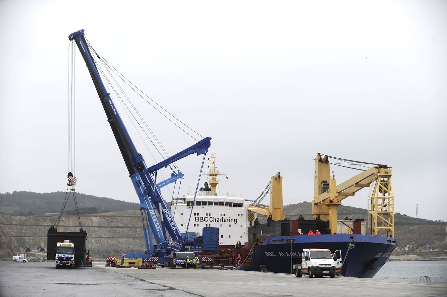 Se trata de una nueva partida de seis pontonas, estructuras metálicas de grandes dimensiones, que fueron izadas al buque BBC Alaska. Sumando la maniobra de carga del buque Canberra sobre el Blue Marlin, realizado por Navantia, son ya un total de diez las operaciones desarrolladas en la nueva dársena.