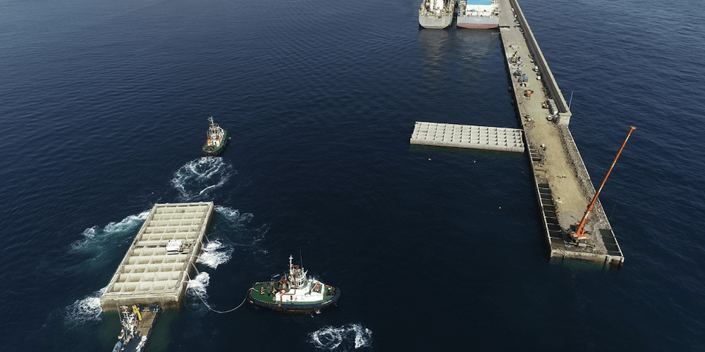 En estos momentos, dos de los siete cajones de la obra están colocados en su sitio y rellenos. Los cinco restantes están fabricados y prefondeados a la espera de una ventana de buen tiempo para su colocación definitiva en la prolongación del Reina Sofía.