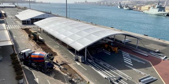El puerto de Las Palmas ultima la instalación de dos terminales provisionales de cruceros, que sumarán 5.000 m² de superficie distribuidos en siete carpas a ambos lados del muelle Santa Catalina.