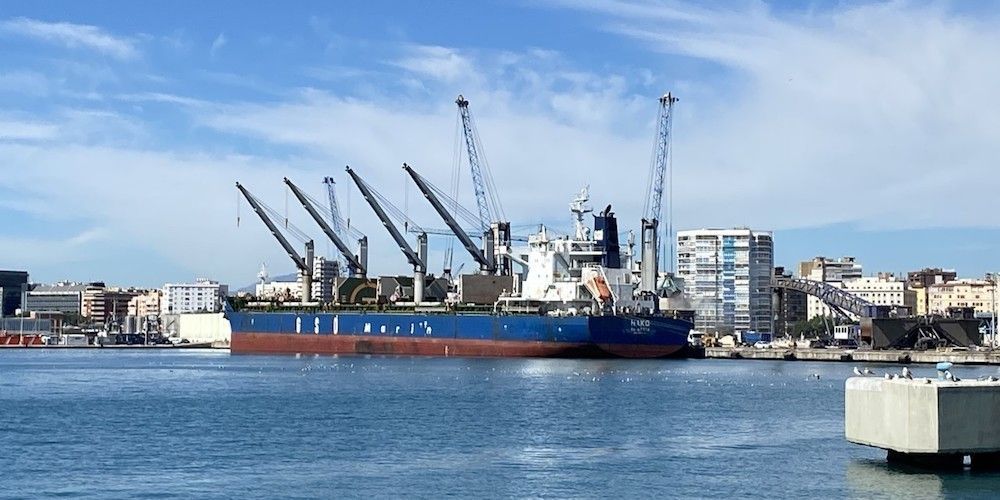 El tráfico agroalimentario continúa creciendo en el puerto de Málaga. El buque ‘Hako’, de 199 metros de eslora, está descargando entre los días 4 y 11 de octubre hasta 54.462 toneladas en la instalación, en una operativa gestionada por Opemar y Servimad en el Muelle 7.