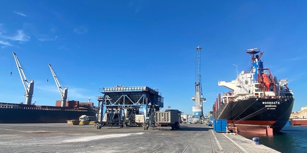 De este modo, el buque ‘Woodgate’, operado por Servimad Global, ha desembarcado 22.000 toneladas de trigo y, además, también se contabiliza la exportación de 7.000 toneladas de hueso, embarcadas en el ‘Selam’ con destino Italia.