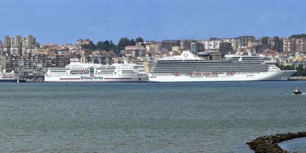 Crucero La Marina en el puerto de Santander junto al ferry de Brittany Ferries