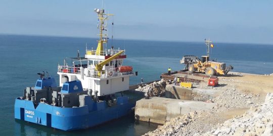 Para la operativa, se han utilizado dos gánguiles, que son embarcaciones para el transporte de áridos en las obras marítimas, con una capacidad de carga de 1.500 toneladas cada uno. Entre los dos buques, transportan diariamente unas 6.000 toneladas de material de la pedrera.
