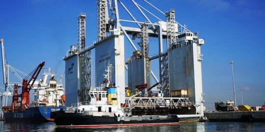 Estas plataformas se usan en los puertos para la fabricación de muelles, diques y otras infraestructuras relacionadas con la actividad portuaria. Cuenta con una eslora de 46,8 metros, una manga de 25 metros y un puntal de unos 28.