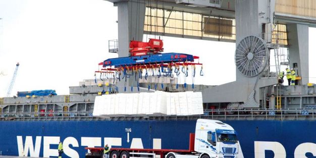 Descarga de pasta de papel en el puerto de Tarragona.
