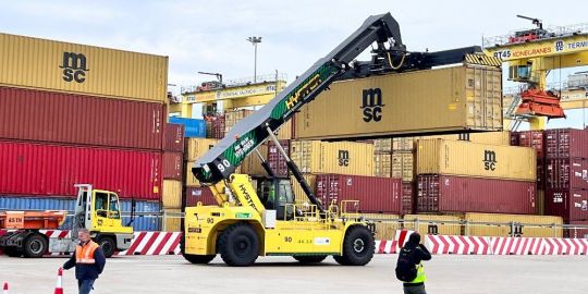El puerto de Valencia se ha convertido en el primer y único recinto europeo y del mundo en utilizar en operativa real una ReachStacker o apiladora capaz de mover contenedores de más de 30 toneladas usando el hidrógeno como único combustible.