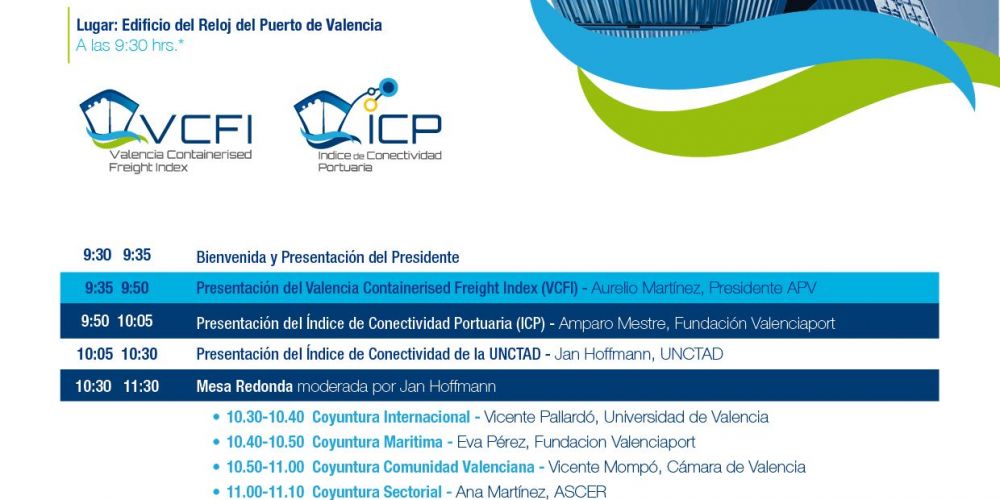 La Autoridad Portuaria de Valencia y la Fundación Valenciaport presentarán el 28 de marzo el nuevo Índice de Conectividad de los Puertos españoles, ICP. Se trata de un indicador para tráficos de contenedor que permite medir el nivel de integración de los puertos en las cadenas de Transporte Marítimo de Corta Distancia.