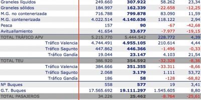 Los puertos de Valencia, Sagunto y Gandía han canalizado 386.920 TEUs en enero, cifra que representa un descenso del 8,36% con respecto a enero de 2015. Desde el puerto explican este descenso por el movimiento de contenedores vacíos, que retroceden un 36,83%, mientras ya que la exportación en contenedor ha aumentado un 23,39% hasta los 57.906 contenedores en enero de 2016.