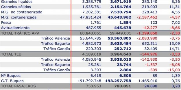 Así, Valenciaport, que agrupa las dársenas de Valencia, Sagunto y Gandía, acumula tres meses consecutivos de descensos, debido, sobre todo, al retroceso del tráfico de contenedores en tránsito, que hasta noviembre descendió un 6,3%.