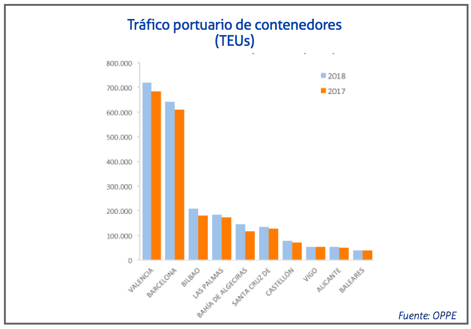En este último apartado, más concretamente, 167.009 TEUs corresponden a contenedores con entrada y salida en el ámbito nacional, con un incremento anual de un 8,87%, y 475.877 TEUs corresponden a contenedores de import-export exterior, un 9,52% más que hace un año.