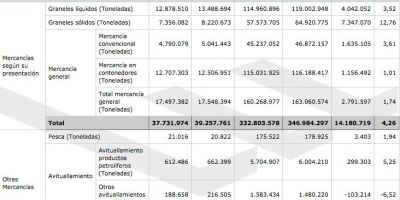 Este incremento, que viene a suponer tres trimestres consecutivos de subidas, se debe al impulso de los graneles sólidos, que superaron los 64,9 millones de toneladas, creciendo un 12,8%.