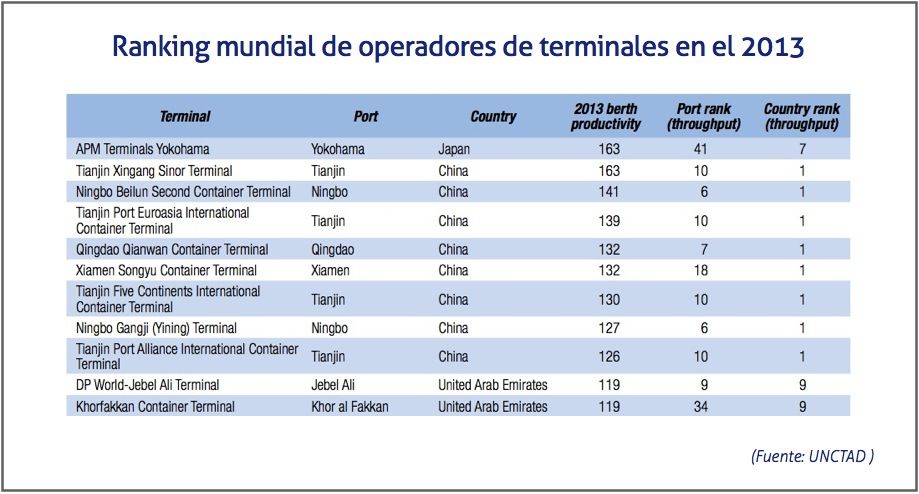 Con el aumento aproximado del 5,6% del tráfico portuario mundial de contenedores, que alcanzó los 651,1 millones de TEUs en 2013, la parte correspondiente a los países en desarrollo se situó en torno al 7,2%, superando el aumento del 5,2% estimado para el año anterior. Los puertos de Asia siguieron a la cabeza, tanto por volumen de tráfico portuario como por eficiencia de las terminales.
