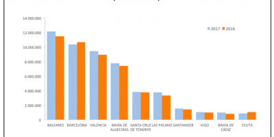 Así mismo, en dicho período por el sistema portuario español han pasado 1.381.902 remolques, semirremolques y plataformas en régimen ro-ro, un 4,56% menos que en 2016.