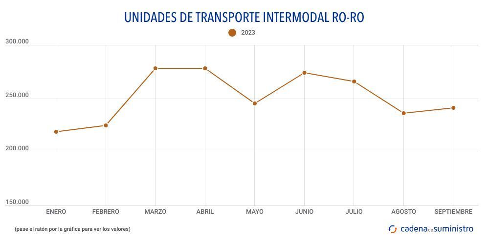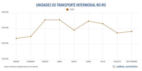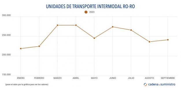 De igual modo, en el mes se han registrado un total de 241.333 unidades de transporte intermodal ro-ro, un 0,03% menos que en idéntico período de un año antes.