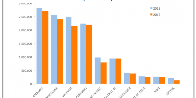 Por otra parte, además, el pasado mes de marzo, los puertos de interés general también han manejado un total de 336.059 automóviles en régimen de mercancía, lo que supone un descenso anual de un 5,28% con relación al mismo mes de 2017.
