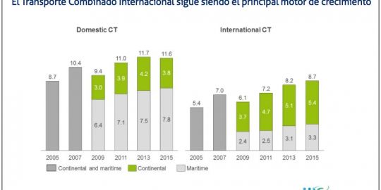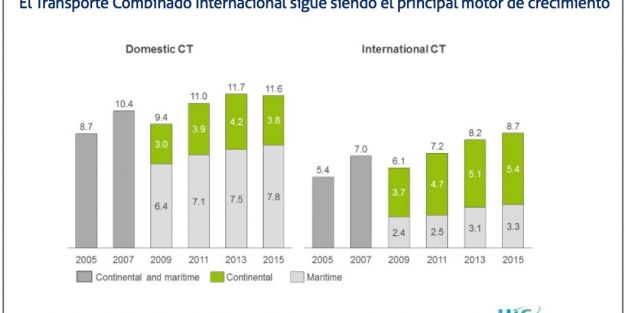 No obstante, aunque el volumen total del transporte combinado en Europa en TEUs se ha incrementado respecto a 2013, el crecimiento total del sector se debe principalmente a los volúmenes del segmento no acompañado, que han subido un 8,5% de 2013 y 2015.