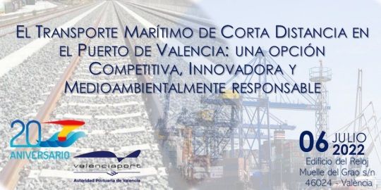 La Asociación Española de Promoción del Transporte Marítimo de Corta Distancia, SPC Spain, organiza el día 6 de julio una jornada sobre 'El Transporte Marítimo de Corta Distancia en el puerto de Valencia: una opción competitiva, innovadora y medioambientalmente responsable'.