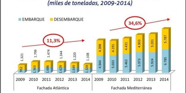 Según recoge el documento, durante 2014 se han agudizado las diferencias que existen entre las dos fachadas españolas en el ámbito del Short Sea Shipping, con un muy buen comportamiento de la mediterránea frente a la persistente caída experimentada en la demanda de la fachada atlántica, a pesar de mantenerse la capacidad de oferta.