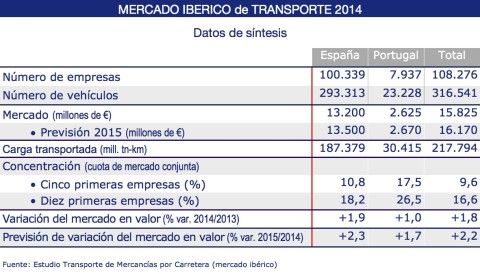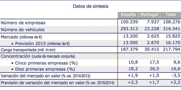 Así, el número de empresas existentes en España se ha situado en 100.339 en 2014, un 2,9% menos que en 2013. En Portugal el número de operadores mantiene igualmente una tendencia decreciente, situándose en dicho ejercicio en 7.937.