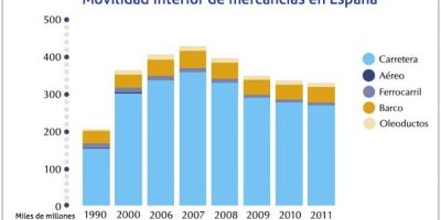 Las mercancías transportadas ha seguido descendiendo; respecto a 2010, las toneladas totales de mercancías transportadas en 2011 (325 mil millones de toneladas-km) han bajado el 1,7%, una caída menor que en los años anteriores pero que mantienen los índices lejos de los niveles del 2007. La diferencia respecto a los niveles pre-crisis se sitúa en 100 mil millones de toneladas-km, casi un tercio de las cantidades actuales.
