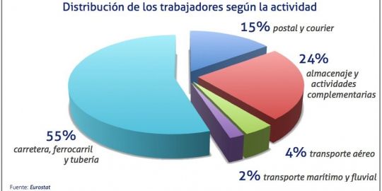 En este contexto, el transporte terrestre ocupa el papel más importante, con el 55% de los trabajadores del sector dedicados al transporte, tanto por carretera como por ferrocarril.
