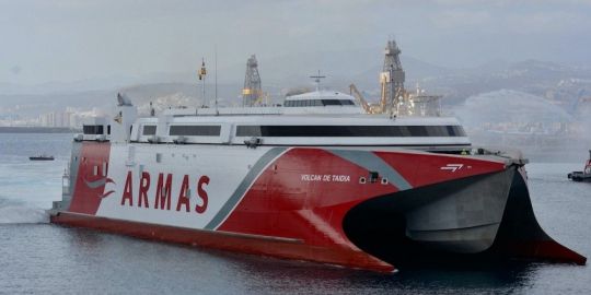 El fast ferry 'Volcán de Taidía' ya está en el puerto de Las Palmas de Gran Canaria, después de un largo viaje de 23 días y 13.000 millas náuticas de recorrido desde su entrega en el astillero Incat, en Hobart, Tasmania (Australia).
