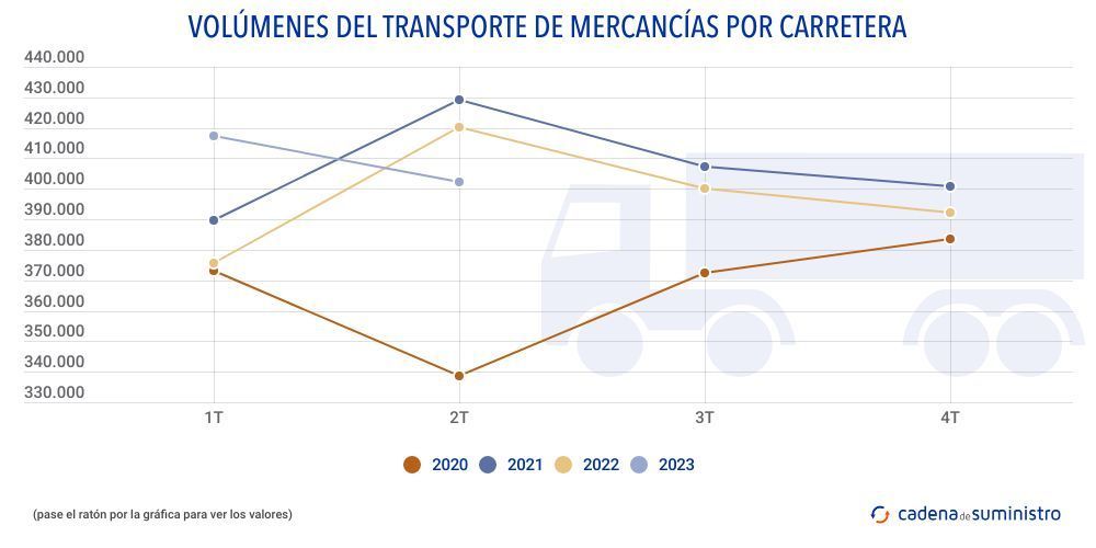 El volumen de mercancías transportadas por carretera cae en el segundo trimestre de 2023