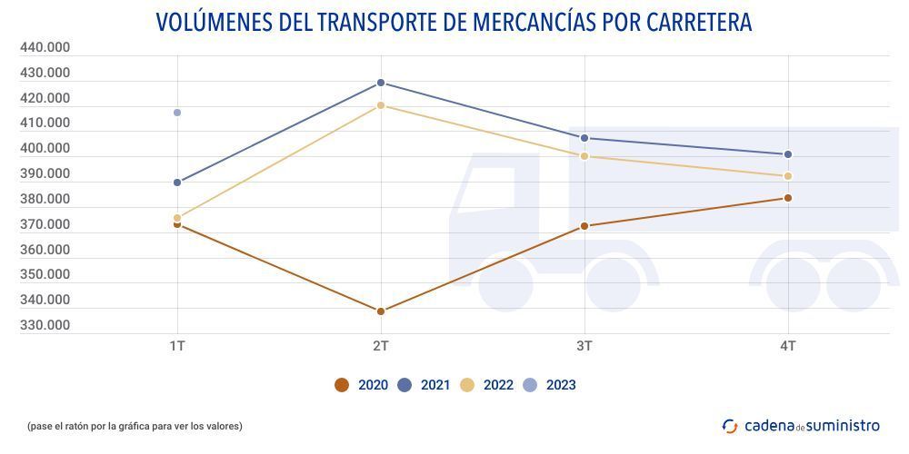 De enero a marzo de este 2023, en España se han movido por carretera un total de 417.513.650 toneladas de mercancías, registro que supone un incremento de un 11,16% con respecto al mismo período de 2022.