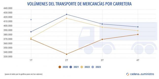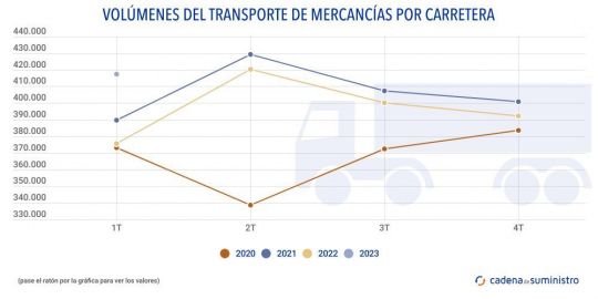 Al mismo tiempo, el transporte internacional de mercancías suma 26.168.190 toneladas en el trimestre, un 1,91% más que en idéntico tramo de 2022.