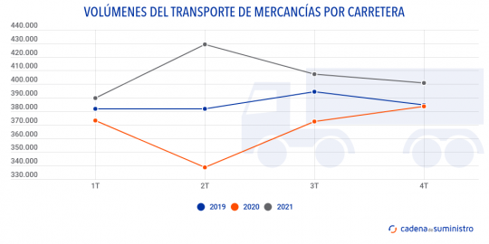 El volumen de mercancías transportadas por carretera ha recuperado holgadamente en 2021 los niveles previos a la pandemia, con un buen último trimestre tanto en servicios nacionales, como internacionales.