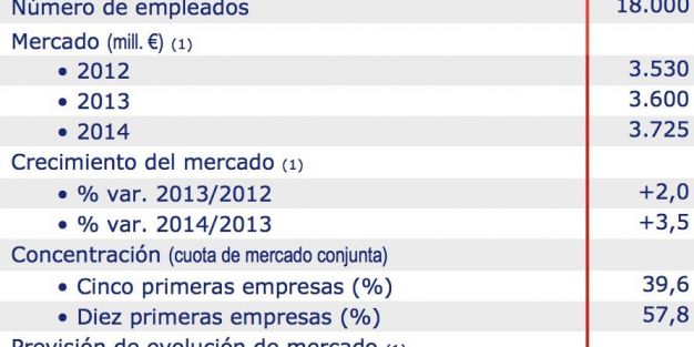 En este contexto, el sector continúa presentando una marcada concentración empresarial, reuniendo en 2014 los cinco primeros grupos el 40% del volumen de negocio sectorial, participación que se elevó al 58% al considerar a los diez primeros.