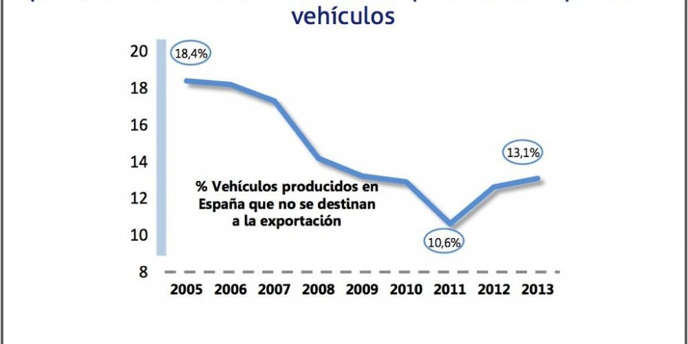 Además, el nivel de utilización de la capacidad de producción de las plantas españolas se está incrementando, aunque se sitúa en un 80% en 2014. Se espera que se alcance el 100% en 2017 con tres millones de vehículos producidos.