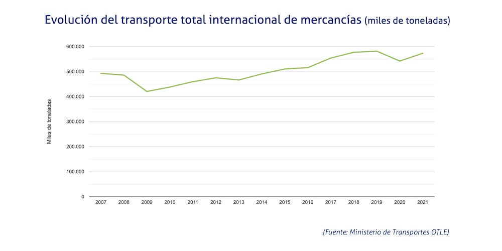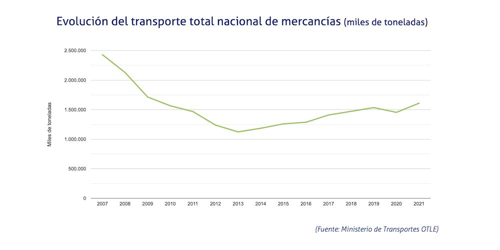 Los registros estadísticos oficiales reflejan que ha sido la carretera la que ha capitalizado el crecimiento en el movimiento de mercancías en el interior del país, con un crecimiento de un 5,5% con relación a 2019.
