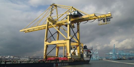 En concreto el embarque ha estado conformado por dos grúas STS (ship to shore) de 1.360 tn de peso cada una y cuatro grúas RTG (rubber tyred gantry) de 135 tn cada una, sumando un total de 3.260 tn.