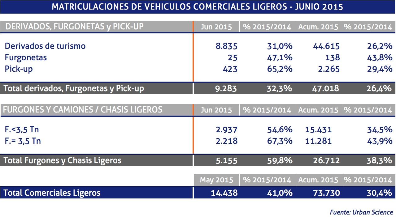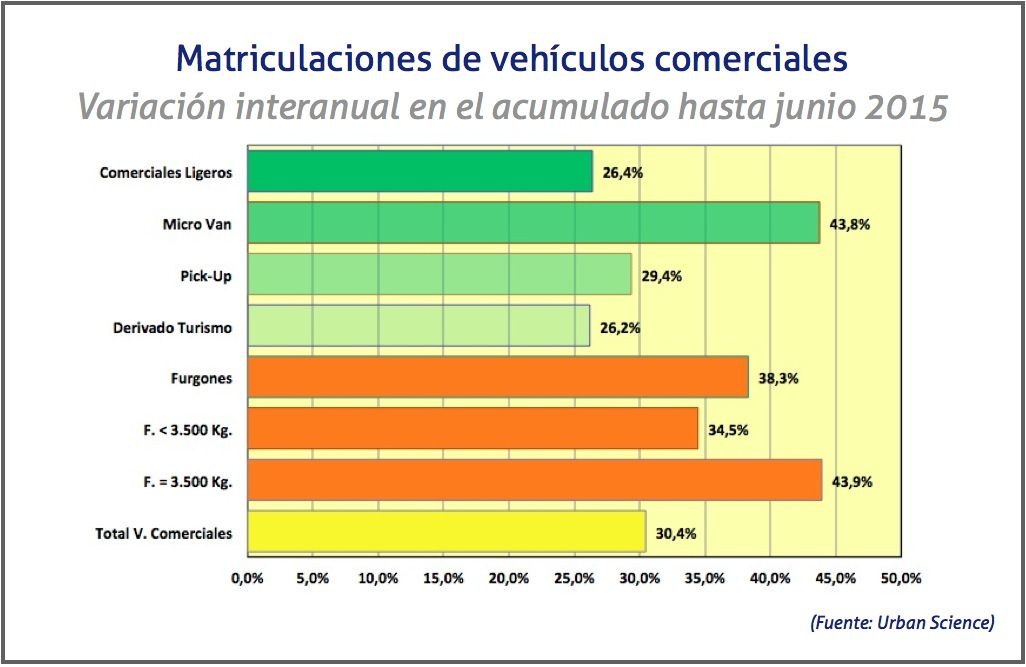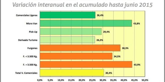 En el mes de junio se ha registrado un aumento del 41,0% con respecto a junio de 2014 en el mercado de vehículos comerciales, con lo que se acumulan ya veintisiete meses consecutivos de crecimiento en este mercado, según los datos publicados por Aniacam. Por segmentos, todos han aumentado, especialmente los furgones de 3.500 kgs, con un 67,3%.