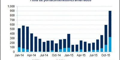 El tamaño de la flota amarrada de portacontenedores ha aumentado un 52% entre octubre y noviembre de 2015, hasta alcanzar los 900.000 TEUs, produciéndose el incremento más fuerte que se ha experimentado en el sector desde principios de 2010.