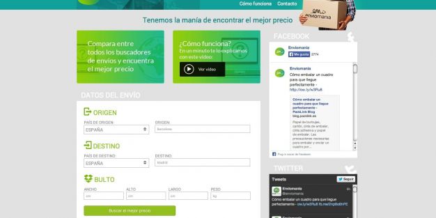 Es posible encontrar la mejor oferta del mercado para enviar un paquete en menos de un minuto. Se posiciona como "metabuscador" gratuito de empresas de mensajería y paquetería que garantiza ahorrar más tiempo y dinero en cada envío. Solo hay que rellenar un breve formulario con el origen, destino, medidas y peso del paquete.