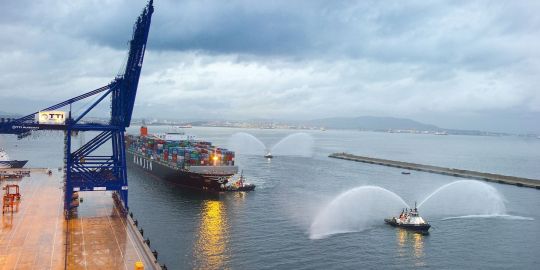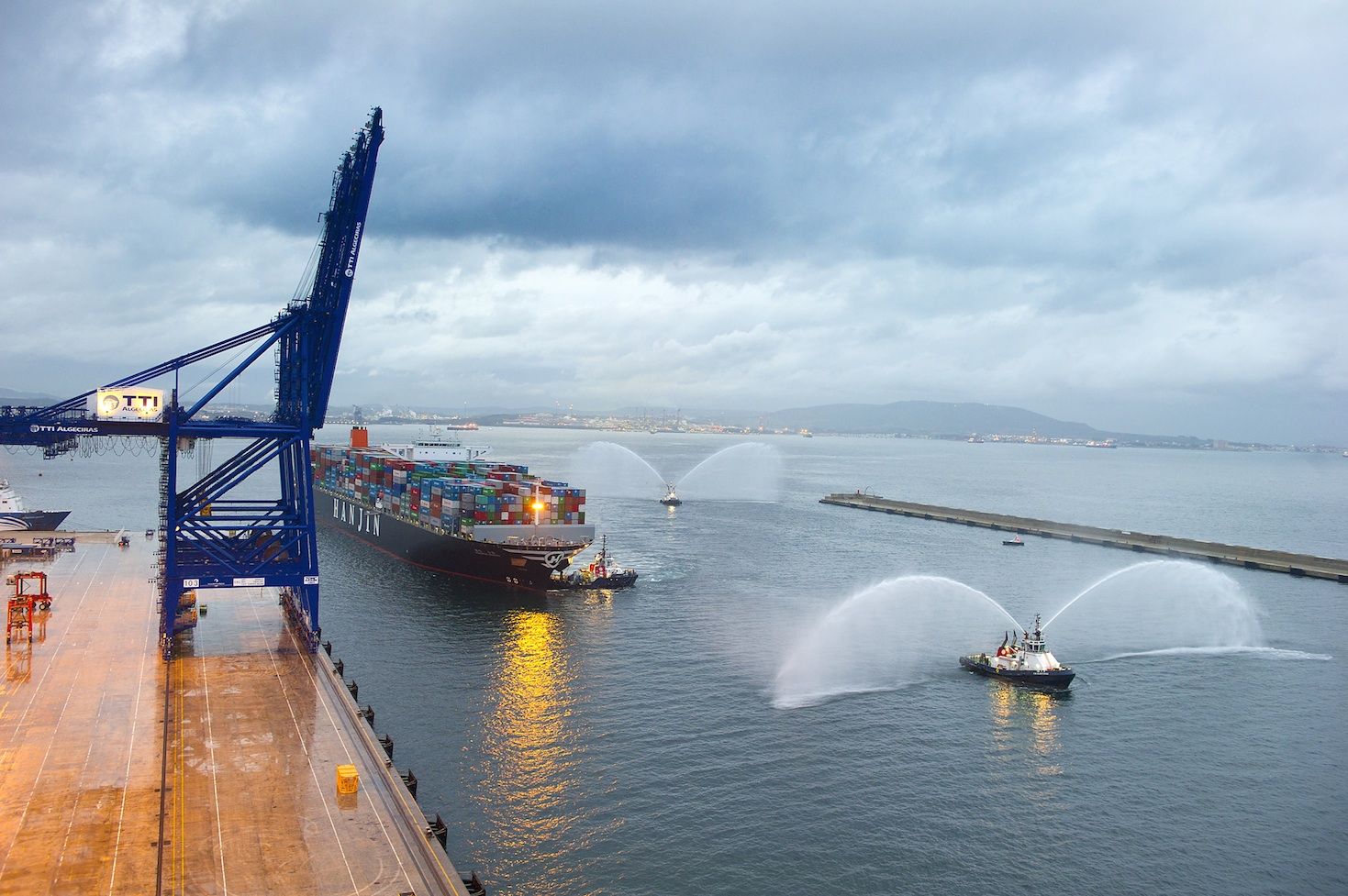 El buque, ha atracado en la terminal pública de TTI Algeciras hoy domingo 29 de abril, en su escala inaugural para realizar la carga y descarga de 1.130 contenedores, estando programado su regreso a Algeciras el próximo 14 de mayo proveniente del puerto francés de Le Havre en su viaje de regreso a Asia.