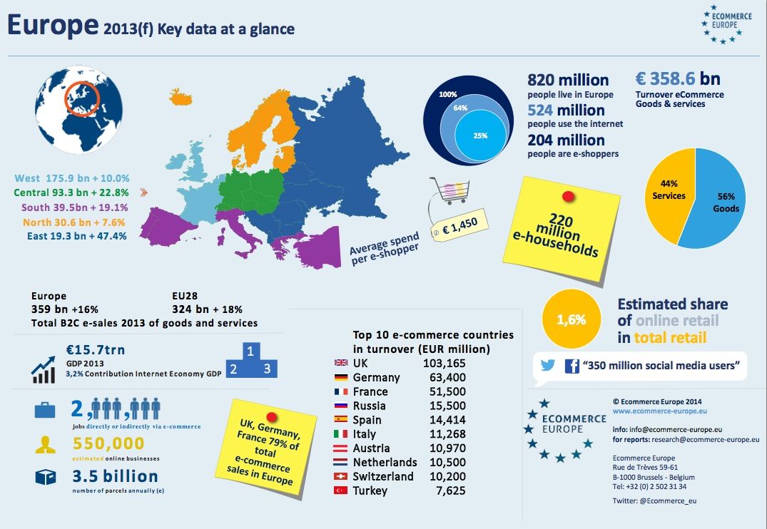 Además, en 2013, el crecimiento fue del 27,9% con respecto a 2012, un aumento superior al europeo, del 19% y al de la Unión Europea, del 18%. De esta forma, según la asociación 'Ecommerce Europe' España es el país con mayores oportunidades para los retailers on-line.