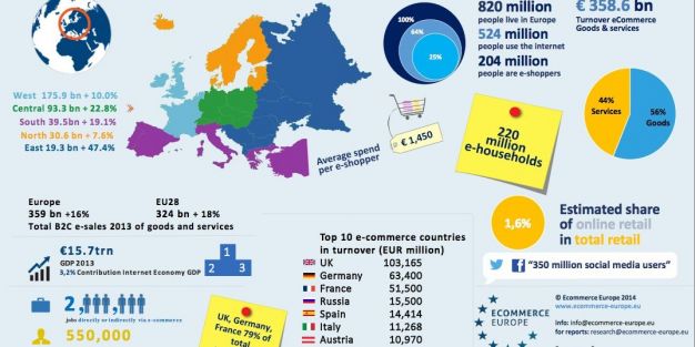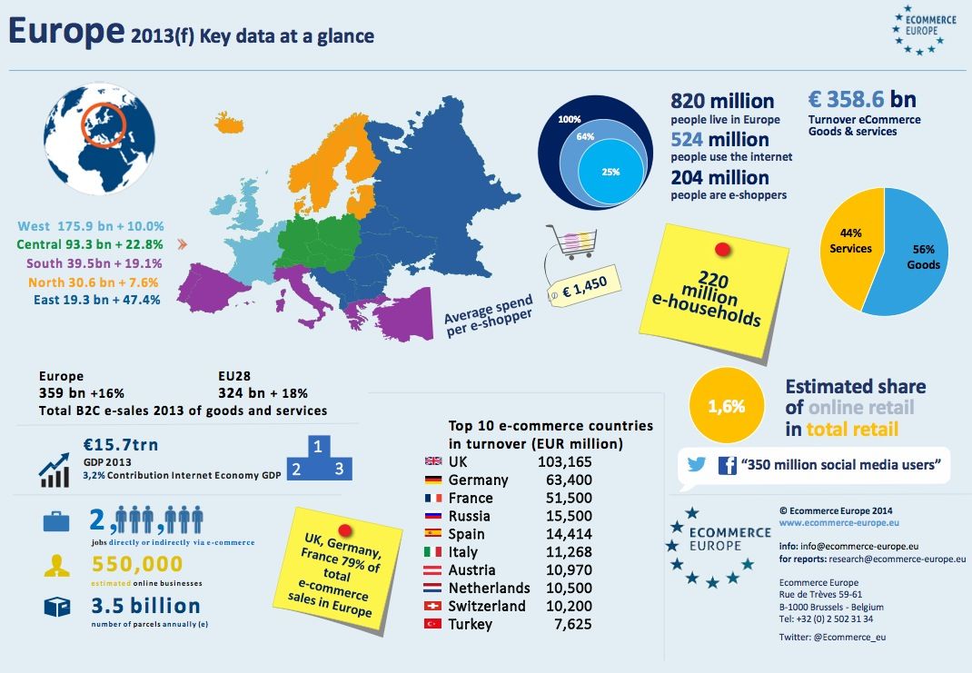 Sin embargo, dentro de los 28 países que componen la Unión Europea, el Reino Unido es el país con mayores ventas a través de este canal, alcanzando los 103.165.000 millones de euros, seguido por Alemania, con 63.400 millones, y Francia, con 51.500 millones. Juntos constituyen el 79% del mercado.