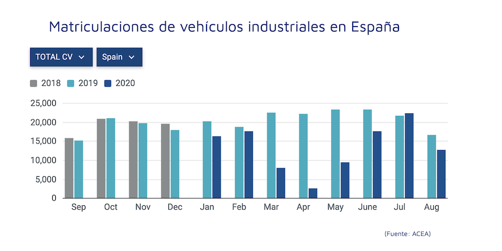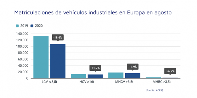 Las consecuencias de la pandemia por el Covid-19 se están dejando sentir de forma muy especial en la evolución negativa de las matriculaciones de vehículos comerciales e industriales en la Unión Europea. Este segmento experimentó una caída de un 0,9% en julio de 2020, según los datos de la Asociación Europea de Fabricantes de Automóviles, Acea, aunque Italia, España y Francia han conseguido crecimientos del 16,2%, el 2,9% y el 1,6% respectivamente.