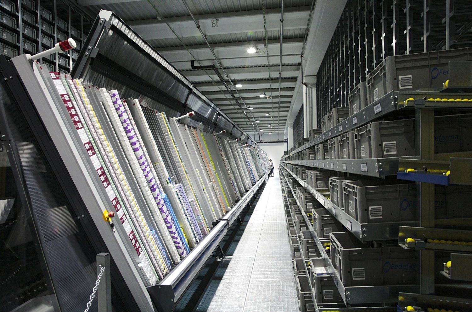 La nueva logística de distribución de la instalación de Fedefarma, de casi 8.000 m², es capaz de almacenar 40.000 referencias y atender 125.000 líneas diarias con sólo 55 operarios, con el fin de suministrar a su red farmacéutica con cuatro entregas diarias.