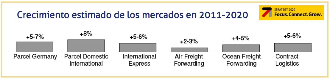 A pesar de la desaceleración general del ritmo de crecimiento del mercado, el grupo espera que las divisiones de DHL crezcan una media anual del 10%. Además, se espera que, debido al fuerte aumento en el negocio de la paquetería, la división Mail crezca un 3%.