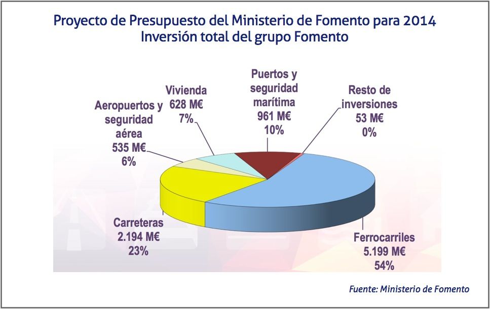 De cara al próximo año, la inversión en ferrocarriles es la partida más significativa con el 54% del total y un presupuesto de 5.199 millones, que irán destinados, en un 69%, a completar la red de alta velocidad.