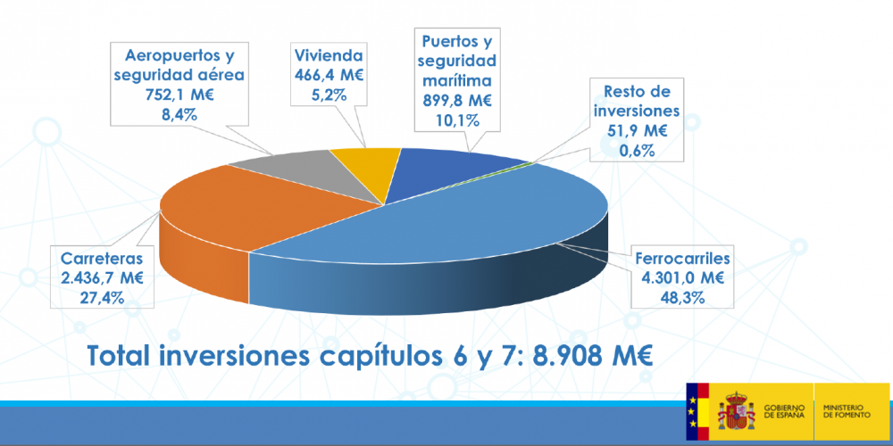Fomento tiene previsto realizar inversiones por valor de 8.908 millones de euros con cargo a los Presupuestos de 2018, lo que supone un crecimiento de un 17% con relación a 2017.