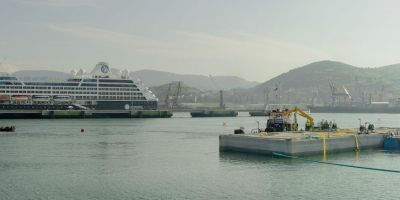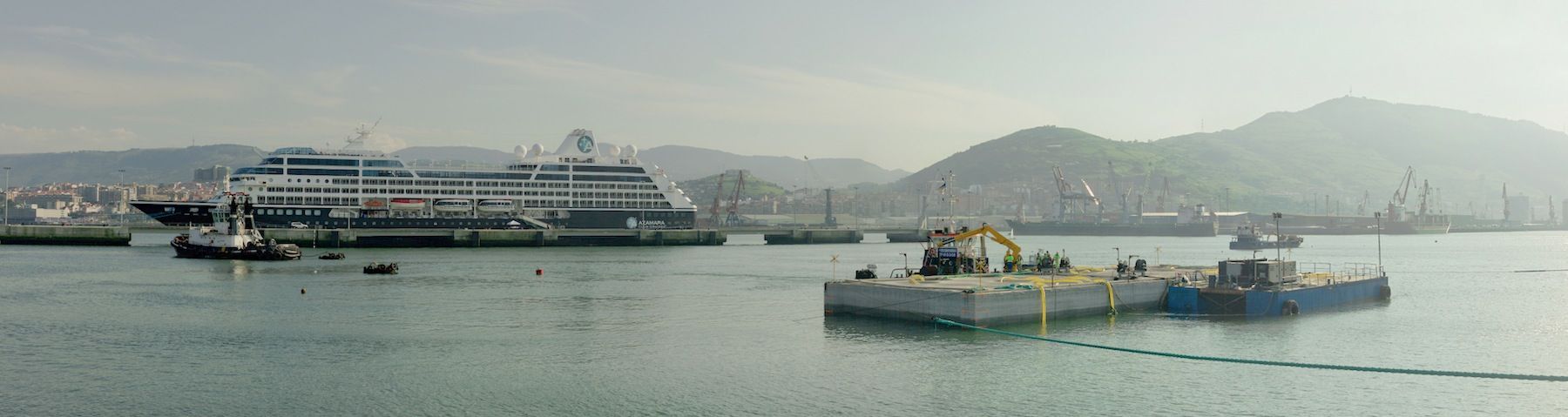 El nuevo muelle de cruceros, que la Autoridad Portuaria de Bilbao está construyendo en Guecho, va tomando forma. Tras las primeras obras de relleno, iniciadas en octubre del año pasado, se ha fondeado el primer cajón de los ocho que conformarán la línea de atraque de este muelle, adosado al contradique de Algorta.