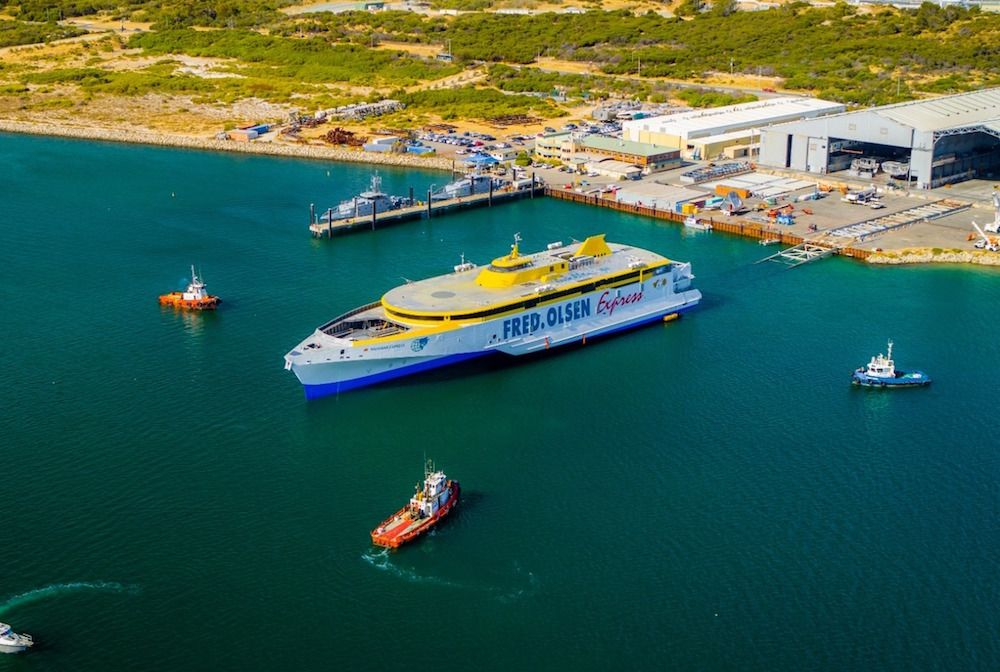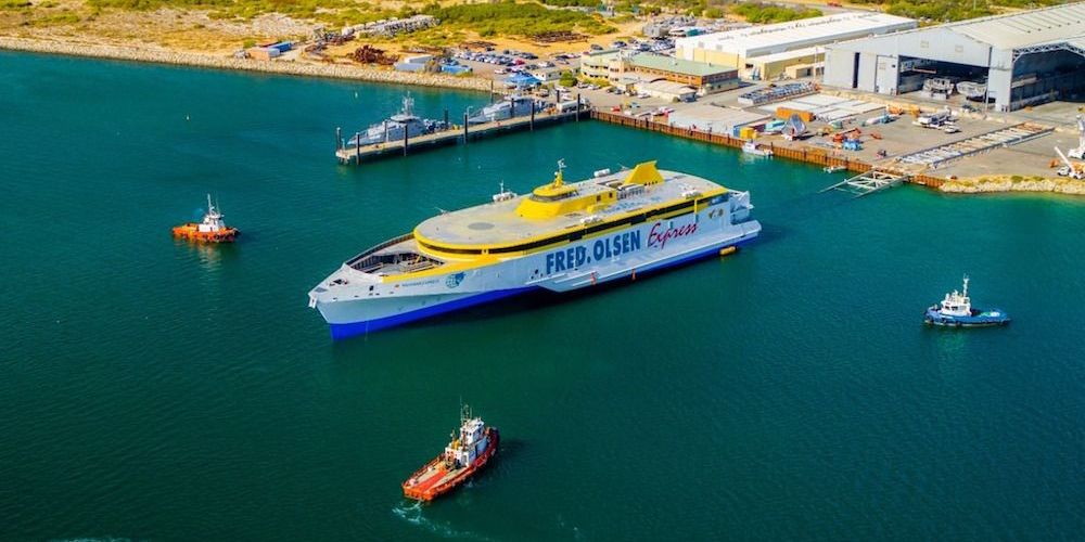 El nuevo trimarán de Fred Olsen Express, el ‘Bajamar Express’, ya ha sido botado en el astillero australiano de Austal.