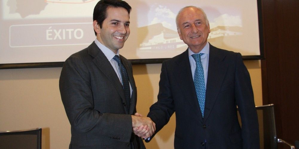 Rafael Aznar, presidente de la Autoridad Portuaria de Valencia, y Guido Grimaldi, director comercial del Grupo Grimaldi, han participado en la ceremonia inaugural de la expansión del enlace entre los tres puertos.