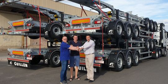 En este sentido, Guillén, ha entregado ocho nuevos portacontenedores a la empresa Westtransit, su distribuidor para los países bálticos de Lituania, Estonia y Letonia. Ambas compañías firmaron un contrato de distribución el pasado mes de marzo de 2018, por el que Westtransit empezó a comercializar toda la gama de semirremolques Guillén en los citados países.