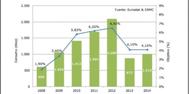 Según el borrador de Real Decreto de fomento de biocarburantes que se encuentra actualmente en tramitación, el objetivo es la progresiva incorporación de biocarburantes a los combustibles de automoción, alcanzando el 5% en 2017, el 6% en 2018, el 7% en 2019 y el 8,5% en 2020.